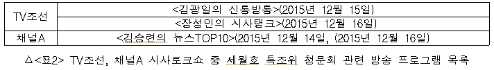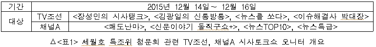 세월호 특조위 청문회 관련 TV조선‧채널A 시사토크쇼 모니터보고서(2015.12.23)