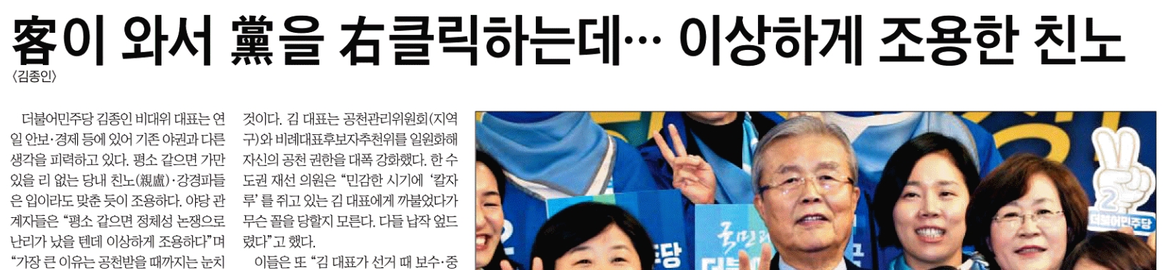 □ <객이 와서 당을 우클릭하는데…이상하게 조용한 친노>(2/20, 8면, 정우상 기자, https://me2.do/IxRzzGq2)