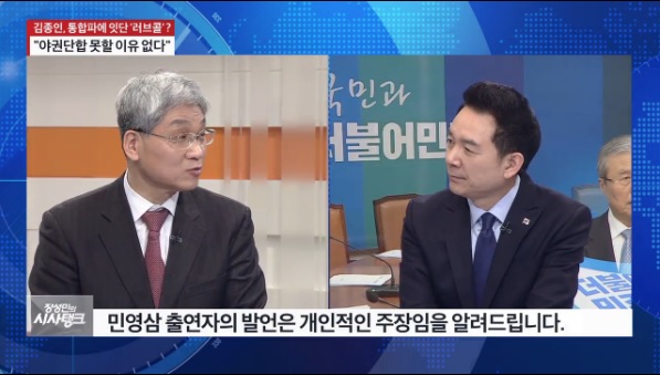 4일에는 김종인 대표에 대한 원색적인 비난이 이어졌다. 출연자들이 “권모술수에 통달한 정치인”(여상원), “정말 볼썽사납다”(고영신), “완전히 분풀이 정치”(민영삼)라며 일제히 김종인 대표를 비난했다. 장성민 씨는 발언을 자제시키기는커녕, “갈수록 사적 감정에 치우친 정치, 감정에 사로잡혀서 정치라는 공적 도구를 사적 분노의 표출도구로(쓰고 있다)”라고 부추겼다. 그러자 민영삼 씨는 “제2의 사쿠라 협잡정치, 야합정치”라며 목소리를 높였다. 그러자 TV조선은 불쑥 “민영삼 출연자의 발언은 개인의 주장임을 알려드린다”는 자막을 내보냈다.