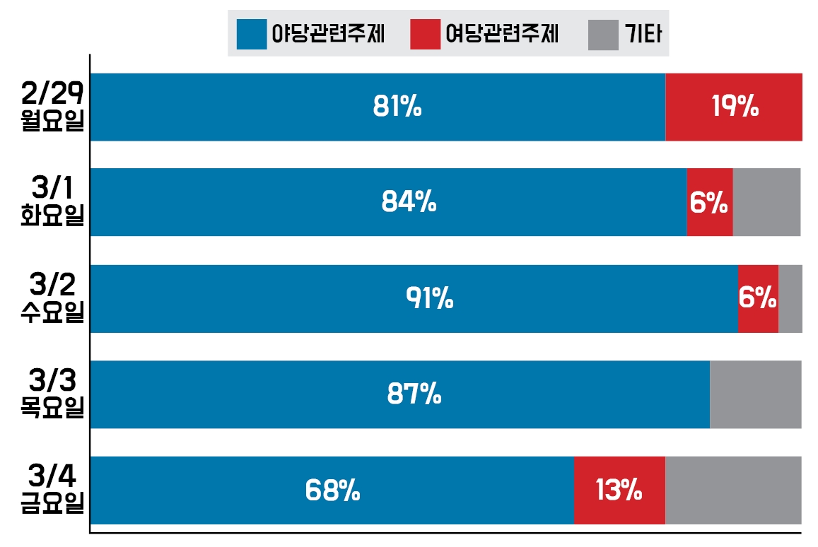 △ 2월 29일~3월 4일, TV조선 <시사탱크> 주제별 비율