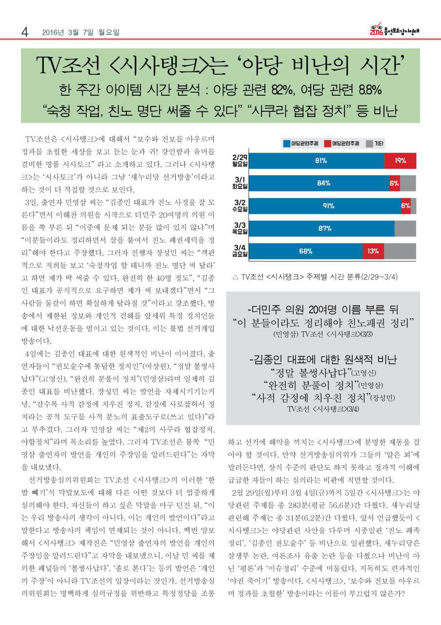 [12차 주간보고서_1][종편시사토크] '시사토크'라 쓰고, '새누리당 선거방송'이라 부른다(2016.3.7)