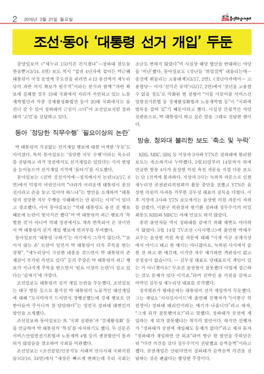 1. 선거개입 나선 대통령, 여전히 ‘미지근한’ 조중동