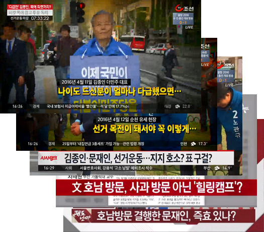 선거를 하루 앞둔 시점에 선거 후 없어질지도 모르는 당이라고 진단하고, 선거 캠페인을 하는 당 대표에 대해서 “앵벌이” 라고 놀리고, 정상적 선거유세 활동을 하는 문 전 대표의 행보에 대해서 말도 안 되는 생트집을 잡는 이들의 행태는 어떻게 이해해야 할까. 종편 시사토크쇼는 한마디로 기승전‘방송빙자 새누리당 선거운동원’이라고 하는 것이 가장 적합한 표현이 아닐까 싶다.