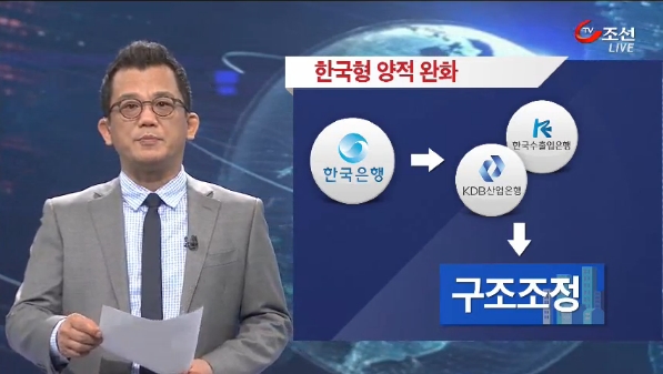 이런 상황에서 TV조선은 정부의 ‘한국형 양적완화’에 잔뜩 힘을 실었다. <'양적 완화'와 '한국형 양적 완화'>에서 최희준 앵커는 “시중에 도는 돈을 이렇게 편법으로 늘려서라도 경기를 살리겠다는 강력한 의지가 담긴 정책”이라고 ‘한국형 양적완화’를 소개한 뒤 “우리가 검토하는 이른바 ‘한국판 양적 완화’는 구조조정이 목표이고 양적 완화 방법도 다릅니다”라며 ‘선진국들이 펼친 무차별적 돈 풀기’와는 다름을 강조했다. 박근혜 대통령의 말을 그대로 옮긴 것이나 다름없다. 이어서 “3대 조선업체와 양대 해운업체 이렇게 5개 회사 부채만 78조 원, 건설, 철강까지 빚잔치를 청산하려면 엄청난 실탄이 필요”하다며 재차 정부 방안을 정당화하고 한국판 양적 완화를 찬성하는 의견도 많지만“이라며 근거 없이 여론을 몰아가기도 했다.