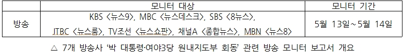 ‘박 대통령‧여야 원내지도부 회동’ 관련 방송 보도 모니터 보고서(2016.5.16)