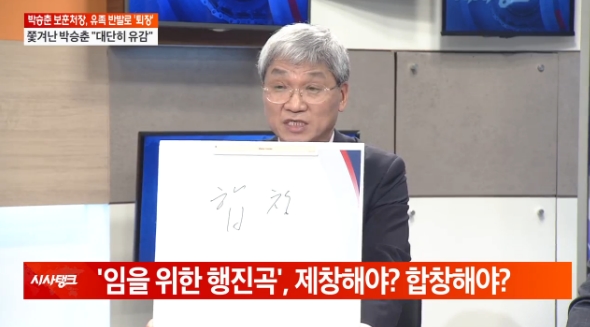 2016년 5월 18일 거행된 기념식 행사에 참석하려던 박승춘 보훈처장은 유가족의 제지로 발길을 돌렸다. 끝까지 ‘임을 위한 행진곡’의 제창을 막은 인물이기 때문이다. 종편 프로그램은 박승춘 보훈처장이 입장하지 못한 장면을 반복해서 내보내면서 유가족들의 행동을 비판적으로 다뤘다. 특히 TV조선 <김광일의 시사탱크>에 18일과 20일 출연한 여상원 씨는 “반민주적인 처사”, “나와 다른 의견을 가진 사람을 용인하지 못하는 것은 5‧18 정신을 훼손하는 행위”라고 비난했다. 채널A <이용환의 쾌도난마>(5/18)에 출연한 이종훈 씨는 “일반국민들이 저 장면을 보면서 어떻게 생각하겠냐”며 “정권 교체해가지고 당당하게 바꾸면, 내후년부터는 당당하게 제창 할 수 있지 않냐”며 “냉철하게 접근했더라면 훨씬 더 성숙해 보였을 것”이라는 훈계를 늘어놨다.