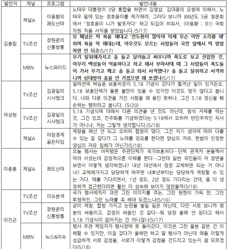 광주정신 폄훼하는 인물과 이들 발언 유포시키는 종편에 강력 대응해야