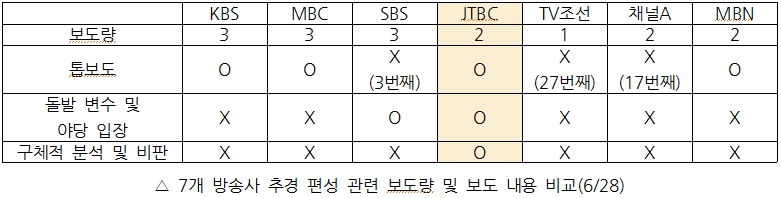 * 모니터 대상 : 7개 방송사 저녁종합뉴스 (KBS <뉴스9>, MBC <뉴스데스크>, SBS <8뉴스>, JTBC <뉴스룸>, TV조선 <뉴스쇼판>, 채널A <종합뉴스>, MBN <뉴스8>)