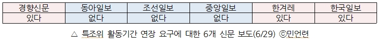 ■ 민언련 오늘의 비추 신문 보도들(6/29)