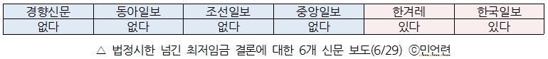 ·법정시한 넘긴 최저임금 결론, 한겨레·한국만 보도