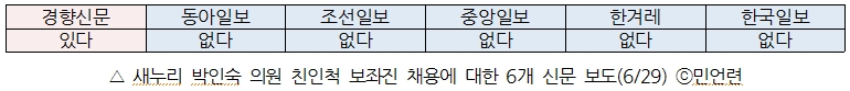 ·새누리 박인숙 의원 친인척 보좌진 채용, 경향만 보도