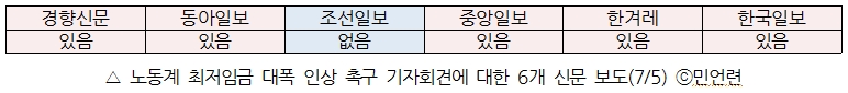 · 노동계 최저임금 대폭 인상 촉구 기자회견, 조선일보만 미보도