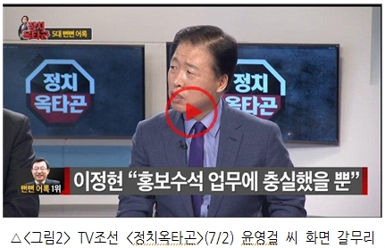 심지어 TV조선 <이봉규의 정치옥타곤>(07/02)에 나온 윤영걸 전 매경닷컴 대표는 “홍보가 원래 호위무사 역할이거든요. 자기 모시는 보스를 위해서는 목숨까지 바쳐야 되고, 신문사에 가면 윤전기에 머리까지 넣어서 나쁜 기사 못 나게 하는 일이 홍보수석의 일입니다”라는 거친 비유까지 서슴지 않았다.