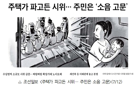 ‧ 조선일보 <주택가 파고든 시위… 주민은 소음 고문>(7/12, 10면, 이슬비 기자, https://me2.do/IxX55Son)