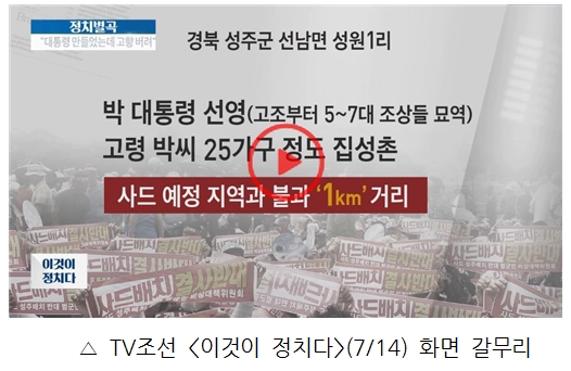 오히려 주민협의를 무시한 정부의 결정방식에 대해 군사•안보 문제라는 점을 내세워 면죄부를 줬다. 송영선 전 새누리당 의원은 TV조선 <이것이 정치다>(7/12)에 출연해 “이런 문제는 국민하고 상의할 문제가 아닙니다”라며 목소리를 높였고, 하루 전 같은 프로그램에서 여상원 변호사 역시 “대국민 설득을 차분하게 하고 그 다음 대응하자?(중략). 군사적이고 아주 중차대한 문제는 이런 속성이 있을 수밖에 없다”고 말