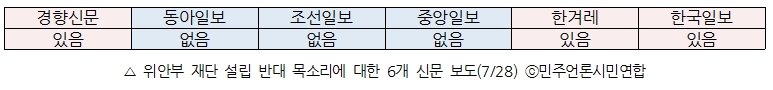 ‧ ‘위안부 재단 설립’ 반발 목소리, 조중동 미보도
