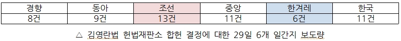 * 모니터 대상 : 경향신문, 동아일보, 조선일보, 중앙일보, 한겨레, 한국일보 (종이신문에 한함)