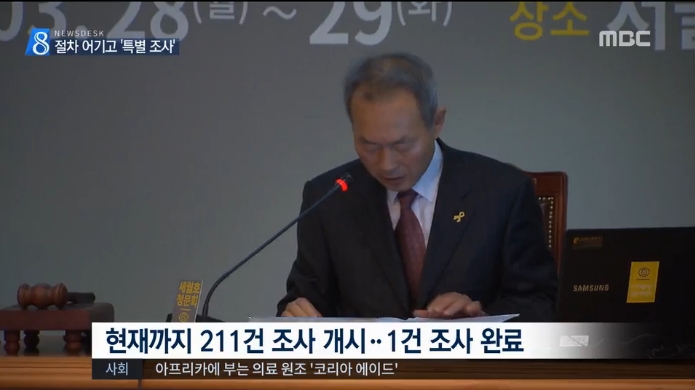 ․ MBC <조사 기간 논란인데…“3차 청문회 하겠다”>(18번째, 박성원 기자, https://bit.ly/2byB9Oj), <탈법 조사한다며 법 절차 무시 ‘좌충우돌’>(19번째, 김나라 기자, https://bit.ly/2bNLFTy)