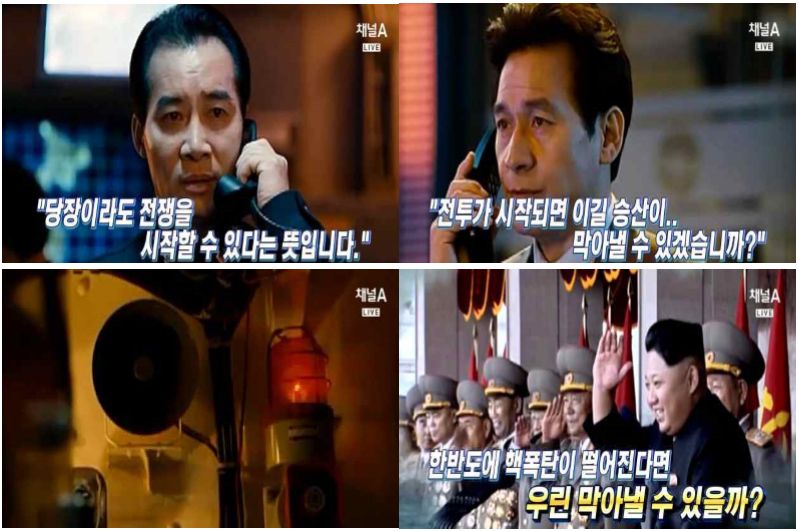 느닷없이 영화도 등장했다. 영화 <한반도>(2006)였다. 배우 안성기 씨는 대통령 역을 배우 독고영재 씨는 해군사령관 역을 맡았다. 채널A <뉴스TOP10>(9/11)는 출처를 전혀 밝히지 않은 채, 영화 일부를 자의적으로 편집해 틀었다. 일본과 전쟁을 앞두고 대통령(안성기)과 해군사령관(독고영재)가 전의를 다지는 장면이다.