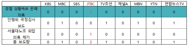 하지만 6일 이 내용을 보도한 방송사는 JTBC 단 한 곳뿐이었다. KBS, SBS, 채널A, YTN 4개 방송사는 이 내용을 보도하지 않았고, MBC, TV조선, MBN, 연합뉴스TV는 안행위 국감에 대해 보도했지만, 경찰의 은폐 의혹에 대해서는 보도하지 않았다. 국정감사 도중 야당 의원들이 질의를 멈추고 기자회견을 진행하는 등 큰 논란이 있었음에도 방송사들은 이에 침묵한 것이다.