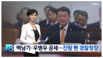 더 심각한 것은 MBN이다. 단편적으로 안행위 국감 소식을 전한 TV조선과 MBC조차 이 청장의 고인 애도 발언과 백남기 특검 여부 등에 대해 다룬 것과 달리 MBN은 그런 ‘사실’을 일절 다루지 않았다. MBN <백남기·우병우 공세…진땀 뺀 경찰청장>(10/6)은 안행위 국정감사 내용을 다루면서도 온전히 경찰청장의 입장에서 곤혹스러워하는 모습 위주로 담았다.