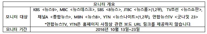 백남기 농민에 대한 방송보도 모니터 보고서(2016.10.24)