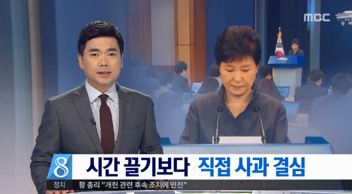 25일, 대국민 사과를 한 박 대통령에 대한 대다수 언론의 반응은 ‘논란만 더 키웠다’는 것입니다. MBC는 다릅니다. MBC는 톱보도에서 대통령의 대국민 사과를 그대로 보여준 후, 두 번째 보도 <시간 끌기보다 직접 사과 결심>(10/25 https://bit.ly/2f64PbY)에서 대국민 사과를 긍정적으로 평가했습니다. 박성준 기자는 “개헌준비 등 현안이 산적한 상황에서 국정운영에 차질을 빚지 않아야 한다는 인식하에 모든 책임을 인정한 것”, “개헌준비와 시급한 국정과제가 쌓여 있는 상황에서 해명과 진실공방으로 시간을 끌기보단 대국민사과라는 정면 돌파를 선택” 등 청와대의 방어적 입장만을 구구절절 나열했습니다.