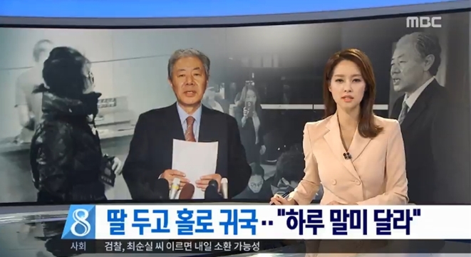 MBC <딸 두고 홀로 귀국…“하루 말미 달라”>(10/30 https://bit.ly/2eLakL8)는 제목부터 ‘딸을 두고 온 어머니의 휴식 요청’이라는 동정적 의미를 담고 있습니다. 보도는 “어떤 불상사가 일어날지 아무도 예측하지 못합니다”라는 이 변호사 발언을 녹취인용한 뒤 육덕수 기자가 “최 씨가 신변에 대한 불안감을 크게 느낀다는 얘기”라고 설명을 덧붙였습니다. 이쯤되면 ‘피해자 코스프레’ 아닐까요?