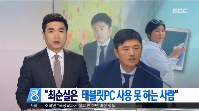 이때 MBC가 나섰다. MBC <“최순실은 태블릿PC 사용 못 하는 사람”>(12/7 https://bit.ly/2h8ePBq)은 고 씨 증언이 “최 씨가 검찰 조사에서 태블릿PC는 자신의 것이 아니라며 일관되게 주장해온 것과 일치”한다면서 “태블릿 PC의 출처가 정확해야 법정에서 증거 능력을 인정받는다는 것이 법조계의 중론이어서 앞으로 태블릿 PC를 둘러싼 치열한 공방이 예상”된다고 강조했다. 다음날에도 MBC의 ‘태블릿PC 흔들기’는 계속됐다.