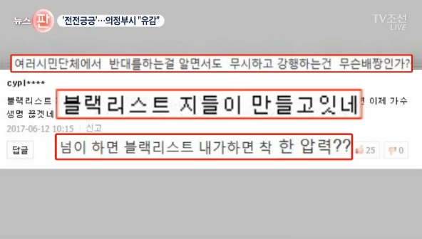 △ ‘블랙리스트 옹호 교수’와 ‘익명 댓글’로 시민단체 비판한 MBC‧TV조선(6/12)