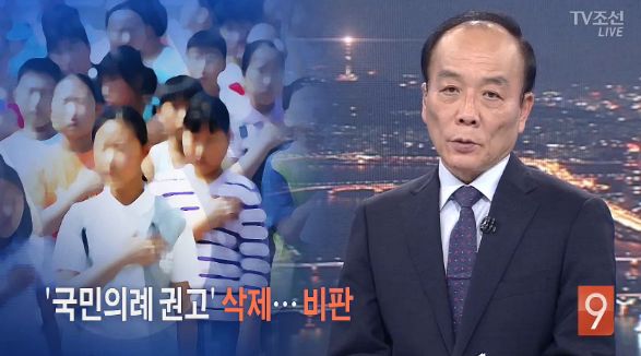 기본적으로 TV조선은 국민의례 권고 규정이 개정되었다는 사실 자체에 몹시 화가 나 있는 모양새입니다.