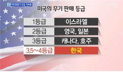 △ 한국이 미국의 무기 판매 등급상 3.5~4등급에 속해있다 강조한 MBN 보도 화면 갈무리(9/5)