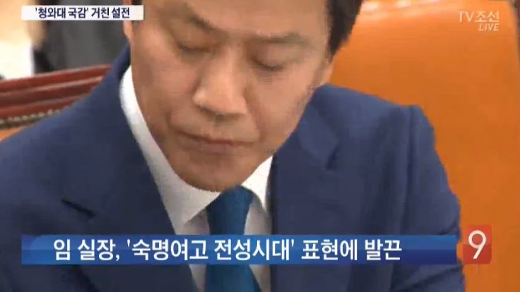 먼저 MBC는 <‘인사 검증’․‘이념 편향’ 신경전>(11/6 https://goo.gl/NBWCYM)에서 “인사 검증 부실 논란 속에 조국 민정수석의 불출석과 또 운동권 출신 참모진 등에 대한 보수야당의 질타가 이어졌”고 이에 대해 임 실장은 “운동권 출신 등 청와대 참모진의 이념편향성 지적에 발끈”했다고 전했고요.