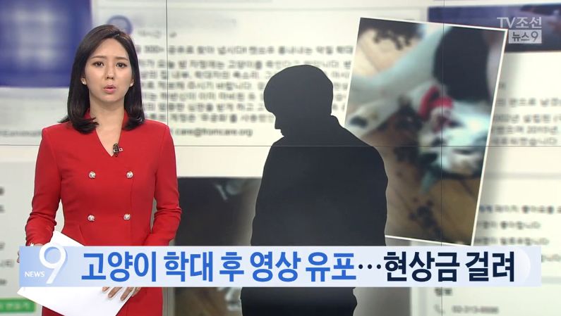 TV조선은 <고양이 학대 후 영상 유포…현상금 걸려>(4/12 하동원 기자 https://goo.gl/z5Dn4J)에서 “고양이가 목줄에 매달린 채 누워있습니다. 한 남성이 고양이 얼굴을 마구 때립니다. 고양이는 남성이 손을 뻗을 때 마다 날카로운 이빨을 드러냅니다. 고양이는 달아나지도 못한 채 경련까지 일으킵니다”라는 멘트와 함께 한 남성이 고양이 얼굴을 마구 때리는 영상을 40초 넘게 보여주었는데요.