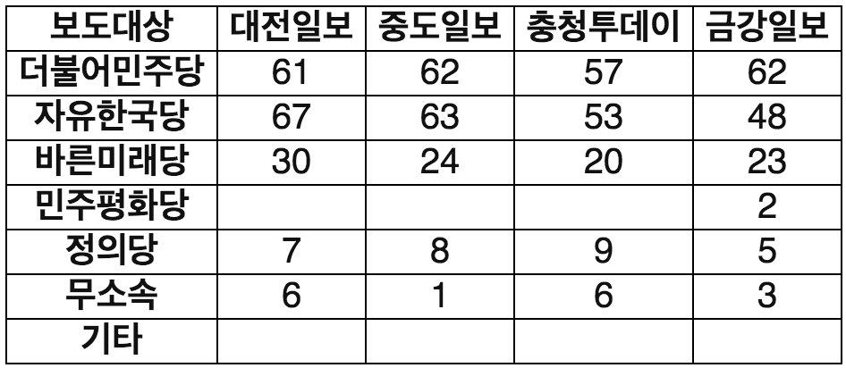모니터 대상 : 대전일보, 중도일보, 충청투데이, 금강일보