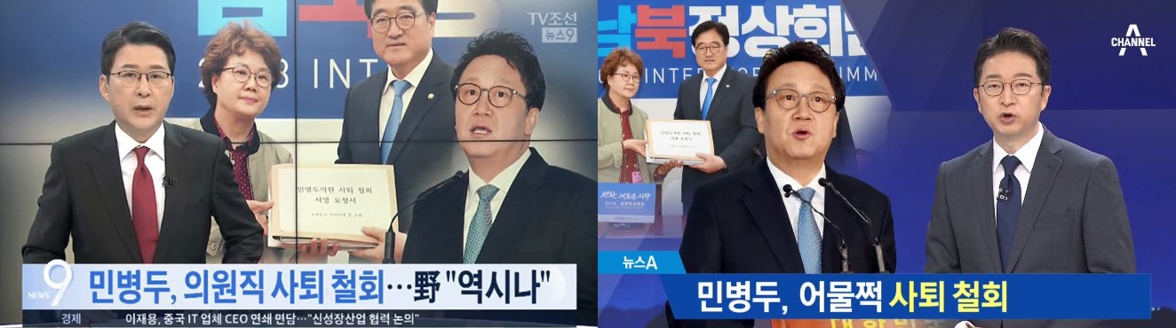 △민병두 의원직 사퇴 철회에 대한 TV조선과 채널A 보도