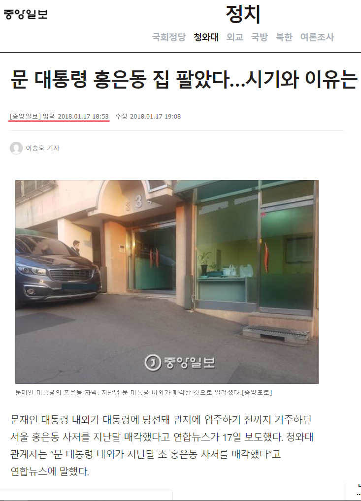 당시 중앙일보는 이 소식을 전하며 아무런 문제를 제기하지 않았습니다. 거래 과정이나 거래 이후에 문제점이 발견되지 않았기 때문입니다. 중앙일보는 “관저 생활을 하게 되면서 홍은동 사저가 필요 없게 되자 이를 처분한 것” “정부가 주택 안정 정책의 하나로 올해 4월 다주택자 양도세 중과 방침을 밝히면서 다주택자에게 올해 4월까지 거주하지 않는 집은 매각할 것을 권고한 것도 문 대통령 내외가 사저 매각을 결정”했다고 설명도 해줬습니다.