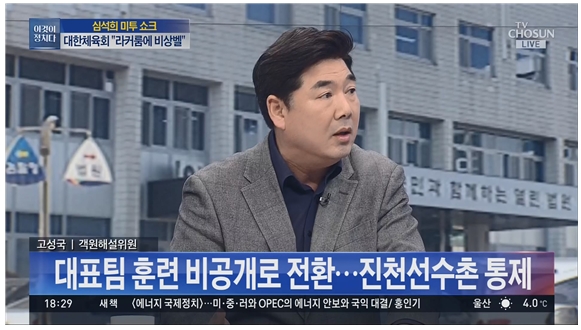 또한 TV조선 <이것이 정치다>는 선수촌 연습 장면 중, 조재범 코치가 심석희 선수를 전담으로 코치하는 모습도 10일 22초, 11일 27초 보여줬습니다. 이들 영상은 두 사람이 선수와 코치의 관계로 활동하던 당시의 영상을 찾아내서 두 사람을 동그라미 치며 부각했습니다.