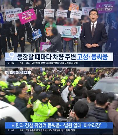 △광주 시민들이 몸싸움을 벌였다고 보도한 TV조선(3/11)