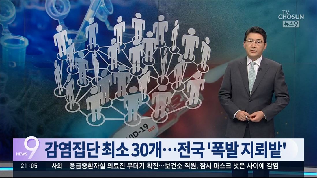 △ 코로나19 집단감염을 ‘폭발 지뢰밭’에 비유한 TV조선 <뉴스9>(8/24)