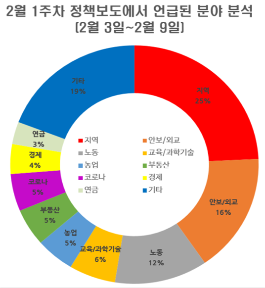 △ 2월 1주차 정책보도에서 언급된 정책 분야 분석(2/3~9) ©민주언론시민연합