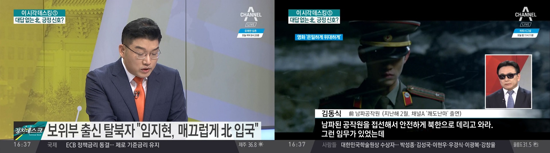 하루 뒤, 채널A <정치데스크>(7/21) 역시 이 내용을 그대로 보도합니다. 홍성규 진행자는 “그런데 북한 보위부에서 요원으로 활동하다가 탈북을 한 요원은 또 임지현 씨 같은 경우에 대남공작원이다. 이렇게 주장을 하고 있어서… 이 부분 짚어 보면 이현수 기자, 실제로 대남공작을 위해서 자진 입북했던 인사들도 있었잖아요”라며 이 씨 주장의 신빙성을 점검하기보다는 ‘과거에 실제로 자진 입북했던 인사가 있었다’는 점에 초점을 맞추었습니다.
