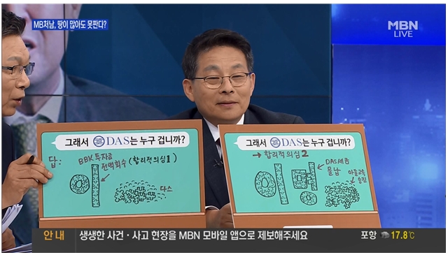 제보 확인 10월 18일 MBN <뉴스와이드>에서 이명박 전 대통령이 연루된 BBK사건에서 최근 이슈로 떠오른 ‘다스 소유주 논란’을 놓고 대담을 나눴습니다.