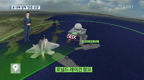특히 KBS <미 대북 정책 ‘한층 강경’>(2/3 https://bit.ly/2kwUqHL)은 무려 3분 19초에 이르는 분석 보도로서 “플린 국가안보보좌관과 매티스 국방장관은 참전 경력이 있는 군 출신” 등 “모두 강경파로 꾸려”진 트럼프 행정부 외교안보 라인을 사실상 선전했습니다. 컴퓨터 그래픽을 동원해 “북한 미사일 요격 훈련”, “2,000km 떨어진 곳까지 들여다볼 수 있는 고성능 해상 레이더를 한반도 근처에 배치”, “미 해병대 소속 최신예 스텔스 전투기 F-35가 미국 영토 밖으로는 처음으로 일본에 배치” 등 미국의 군사적 움직임을 상세히 묘사하면서 당장이라도 북한과의 군사적 충돌이 발생할 것처럼 공포 분위기를 조성했습니다. 그러나 KBS의 그 어떤 보도에도 사드 배치에 반대하는 우리 국민의 여론이나 중국‧러시아 등 타국을 고려한 내용은 없습니다.