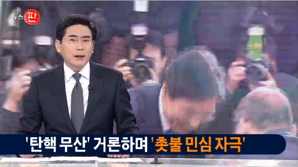TV조선은 이처럼 조직적이고 불법적인 ‘탄핵 반대 세력’의 방해 공작과 탄핵기각론 유포를 언급조차 하지 않았죠. 그러더니 오히려 그러한 공작에 대응해 탄핵에 집중하자고 한 야권을 비난했습니다.
