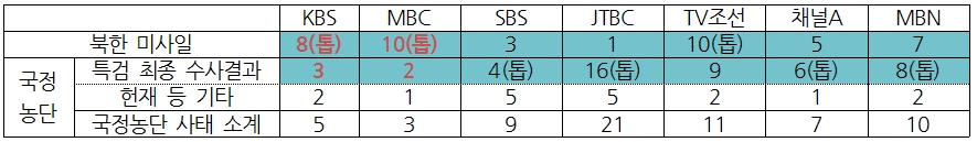 △ 7개 방송사 북한 미사일 관련 보도 및 국정농단 사태 보도량 상세 비교(3/6)