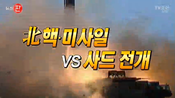 TV조선이 사드 관련 보도에서 두각을 드러내는 부분이 또 있습니다. 유독 북한의 조선중앙TV 화면을 많이 인용한다는 겁니다. TV조선은 ‘트럼프의 발빠른 대북강경 대응’을 톱보도로 띄워준 이후 세 번째 보도로 ‘북한의 미사일 위협’을 부각했는데요. TV조선 <북 “미사일은 주일 미군기지 타격용”>(3/7 https://bit.ly/2mwoZ0G)은 “북한이 노골적으로 어제 미사일 발사는 주일 미군 기지를 겨냥했다고 공식 발표했습니다. 유사시 한국을 배후지원할 곳을 공격대상으로 삼은 것”이라 전하면서 조선중앙TV를 3차례나 인용했습니다. △ “고도의 격동태세를 유지하며 당중앙이 명령만 내리면 즉시즉각에 화성포마다 멸적의 불줄기를 뿜을수 있게” △ “유사시 일본주둔 미제침략군기지들을 타격할 임무를 맡고있는 조선인민군 전략군 화성포병부대들이 참가하였다” △ “합동군사연습을 강행하여 조선반도의 평화와 안정을 파괴하고 정세를 핵전쟁접경에로 몰아가고있는 전쟁미치광이들을 탄도로케트 집중타격으로 짓뭉개버릴” 등 3가지입니다. 물론 이날 JTBC를 제외한 6개사 모두 조선중앙TV를 인용했지만 그 회수가 1~2차례에 그쳤고 내용의 자극성도 TV조선에 비할 바가 아닙니다.