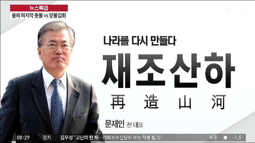 △ 문재인 대통령이 지난 2016년 후보시절 발표한 신년 메시지인 ‘재조산하’. ‘재조산하’는 임진왜란 때 서애 류성룡에게 충무공 이순신이 적어 준 글귀로, 폐허가 된 나라를 다시 만들지 않으면 죽을 자격도 없다고 생각했던 충신들의 마음으로 대한민국 대개조에 절박하게 나서야 한다는 뜻이다.
