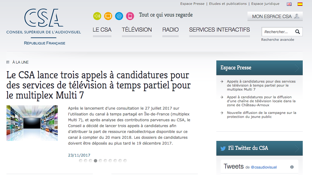 △ 방송위원회 위원을 여야 동수로 하고 대통령은 방송위원회 위원장만 임명하게 하는 프랑스 방송위원회 제도는 방통위가 모델로 삼아야한다. 사진은 프랑스 방송위원회(CSA) 홈페이지 (사진 : www.csa.fr)