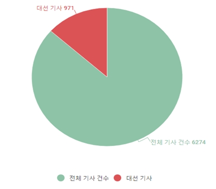 △ <그림1> 네이버 모바일 뉴스 페이지 대선 기사 건수(3/20~4/9) ⓒ민주언론시민연합